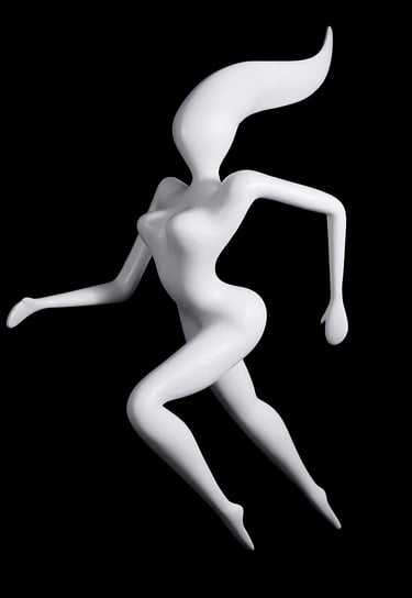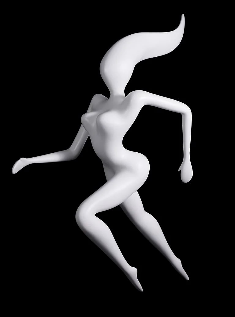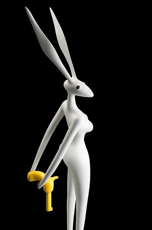 In this enchanting world, beauty, movement, simplicity, and femininity intertwine seamlessly. Graceful women adorned with colorful elements share the stage with playful bunnies and other fantastical creatures, all seemingly plucked from the whimsy of a dream. Each sculpture is a celebration of joy and lightness, a testament to the artist's commitment to infusing his work with a sense of delight.